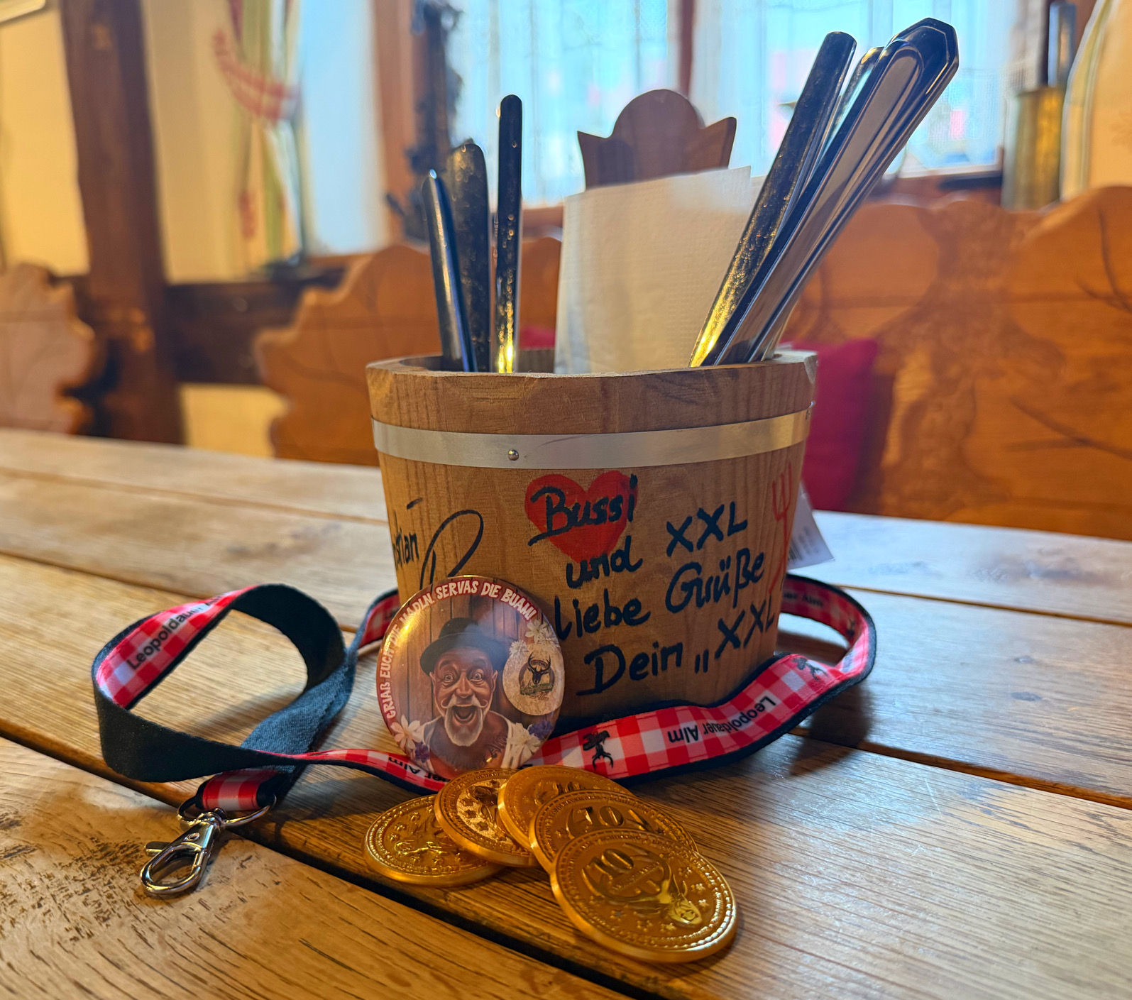 с личным пожеланием от хозяина XXL, брелоком, магнитом на холодильник и сертификатом на 50 € от XXL Leopoldauer Alm