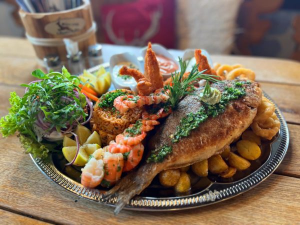 von „Eishken Estate“ vom Grill mit Petersilie Erdäpfel gemischten Salat Knoblauch und Cocktailsauce so wie Kräuterbutter