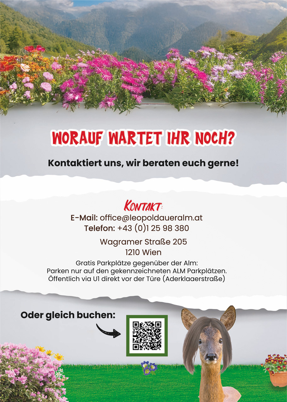 Die Endgültige Personen Anzahl muss bis mindestens 5 Werkstage vor der Reservierung bekannt gegeben werden nach dieser Personen Anzahl wird auch abgerechnet ! Danke für Ihr Verständnis !