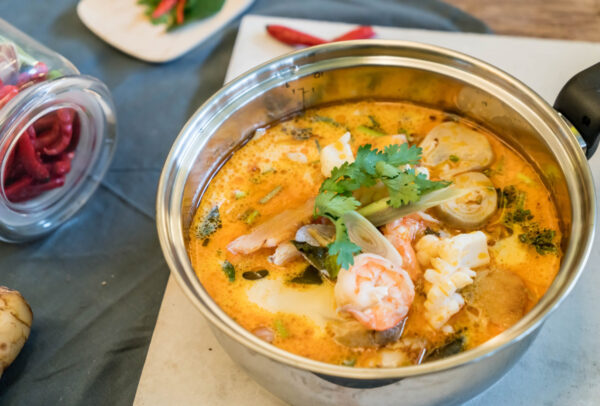mit Tomaten Muscheln, Gemüse, Fisch und Meeresfrüchten und Erdäpfeln